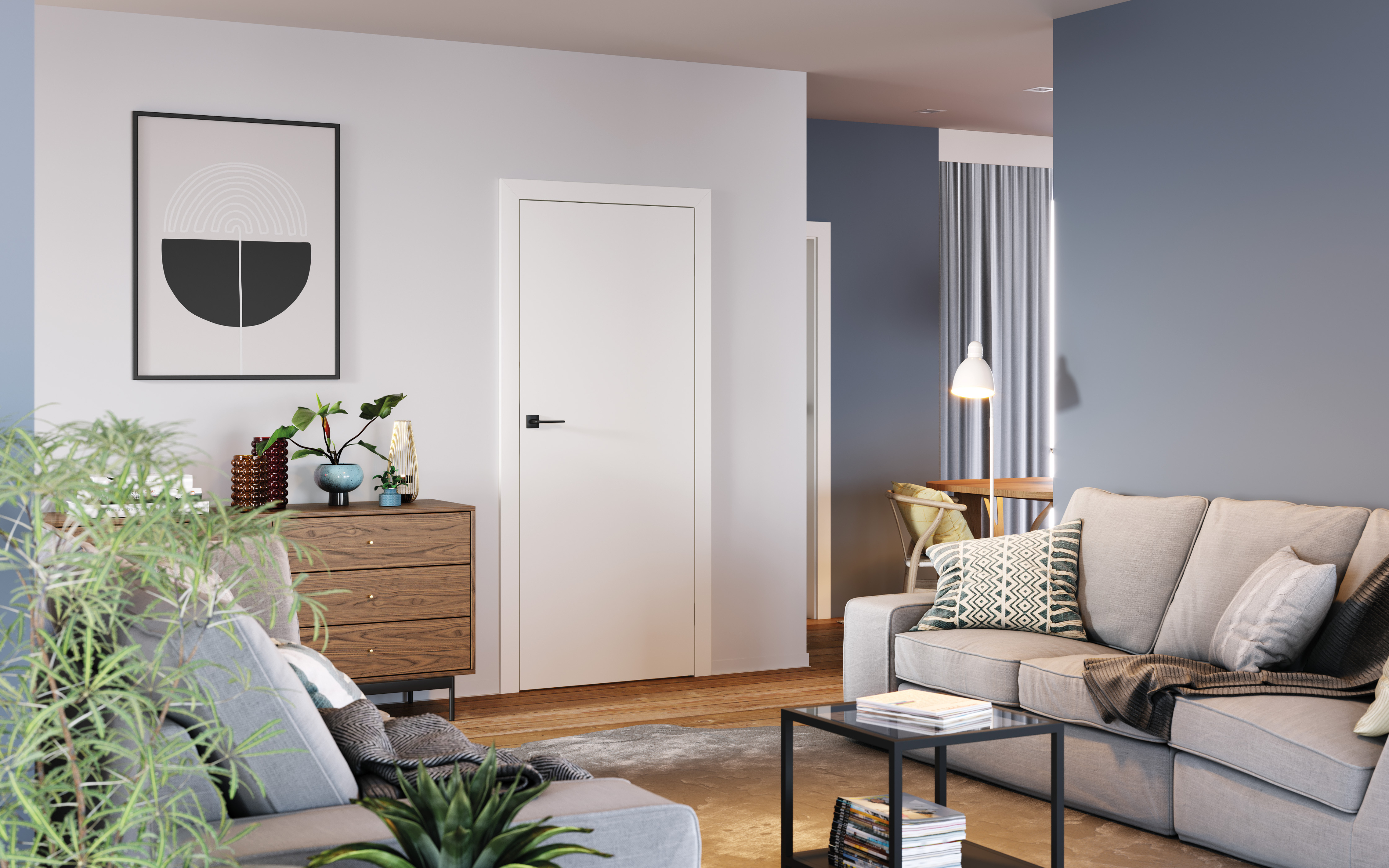 Smooth flush doors without any decorative elements. Thanks to their simplicity, they are a versatile base for any interior. The pure form of the Basic Home design line represents the very popular modernist style.
