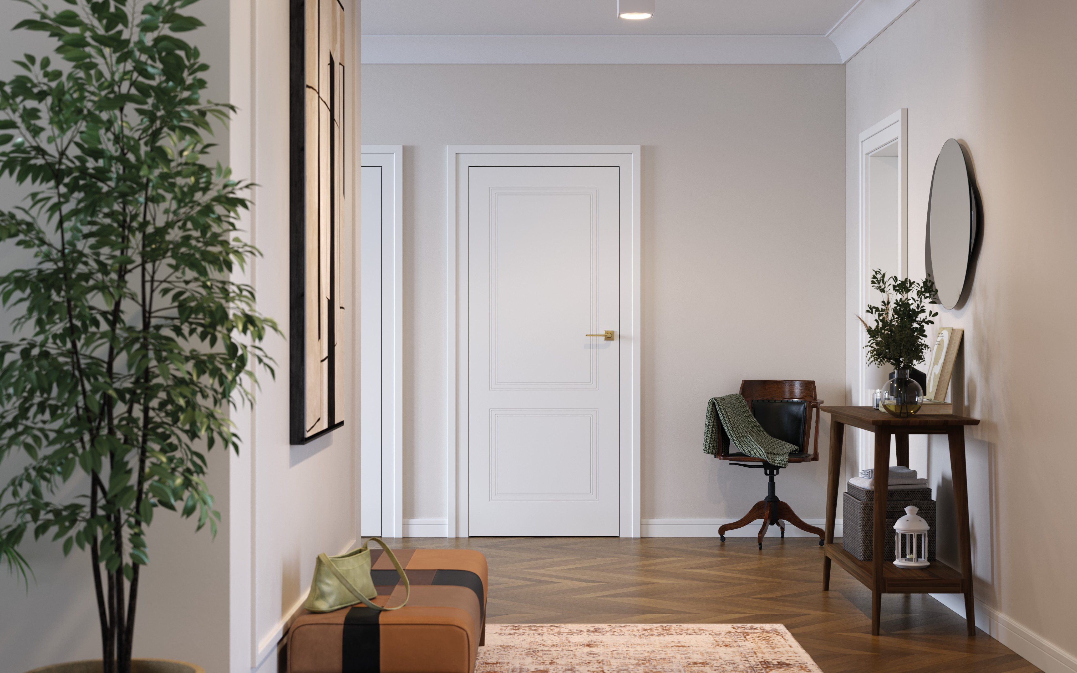 A design line based on classic divisions and proportions, inspired by old styles. The distinctive glazing with muntins is accompanied by classic finishes such as white and warm wood shades and browns.