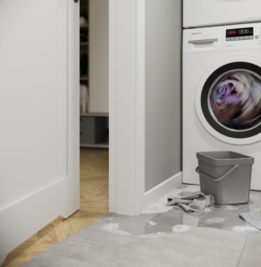 A malfunction in the laundry room? When the washing machine spills water is no joke, but since there is HYDRO PROTECT™ in PORTA doors for wet rooms no domestic flooding is terrible.