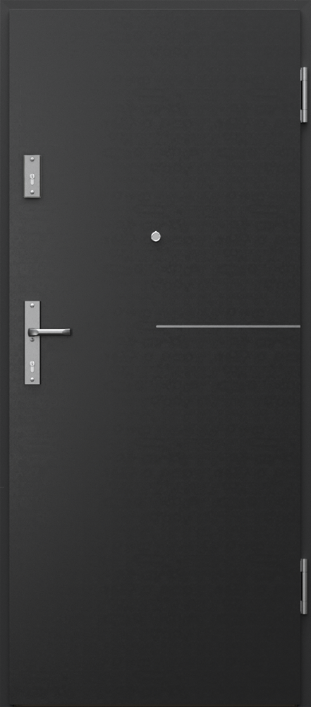 Ъглова метална каса, изработена от двустранно поцинкована ламарина с дебелина 1,5 мм, оборудвана със самозагасващо уплътнение, осем монтажни дюбела, регулируеми заключващи куки и праг от неръждаема стомана.