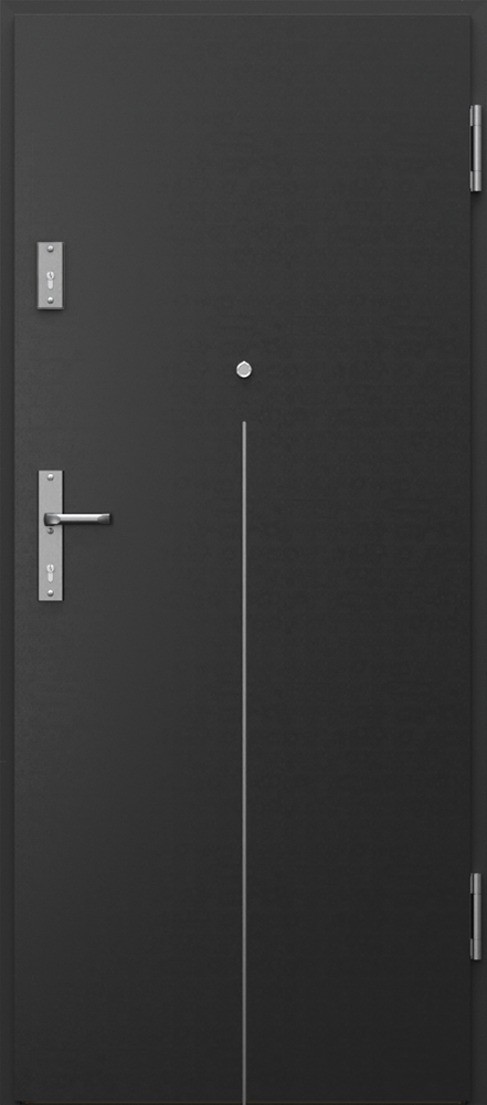 Ъглова метална каса, изработена от двустранно поцинкована ламарина с дебелина 1,5 мм, оборудвана със самозагасващо уплътнение, осем монтажни дюбела, регулируеми заключващи куки и праг от неръждаема стомана.