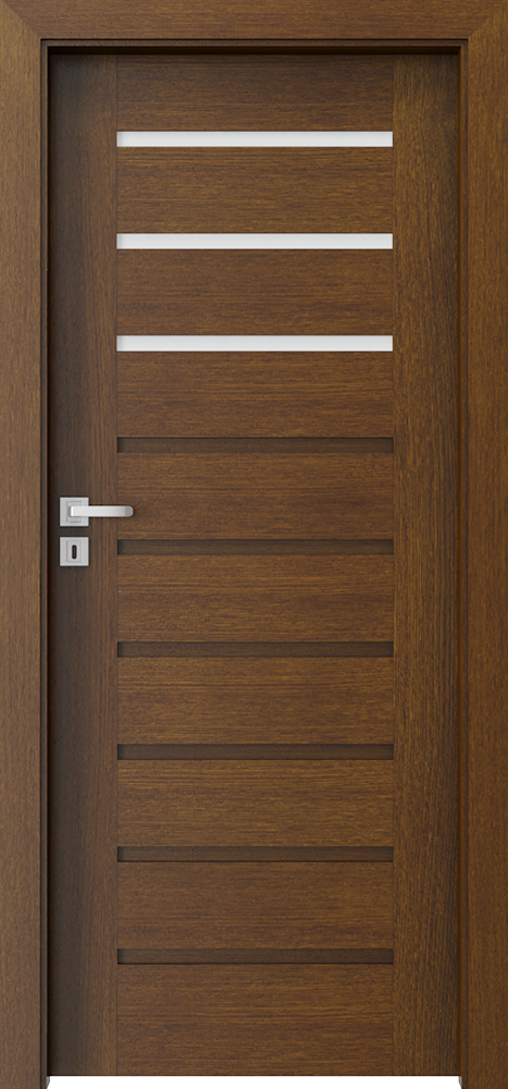 Цялата е покрита с естествен фурнир. Повърхността на крилото е защитена с екологични лакове на водна основа, фурнири от следните групи: Селект,Натурaлен Дъб, Сатен бели) са втвърдени чрез UV технология (полумат). Закалено матирано стъкло.