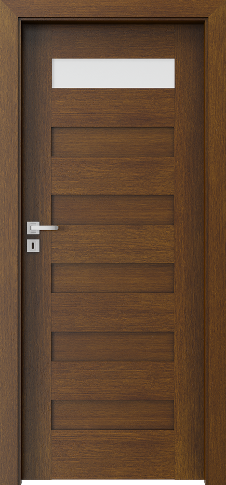 Цялата е покрита с естествен фурнир. Повърхността на крилото е защитена с екологични лакове на водна основа, фурнири от следните групи: Селект,Натурaлен Дъб, Сатен бели) са втвърдени чрез UV технология (полумат). Закалено матирано стъкло.