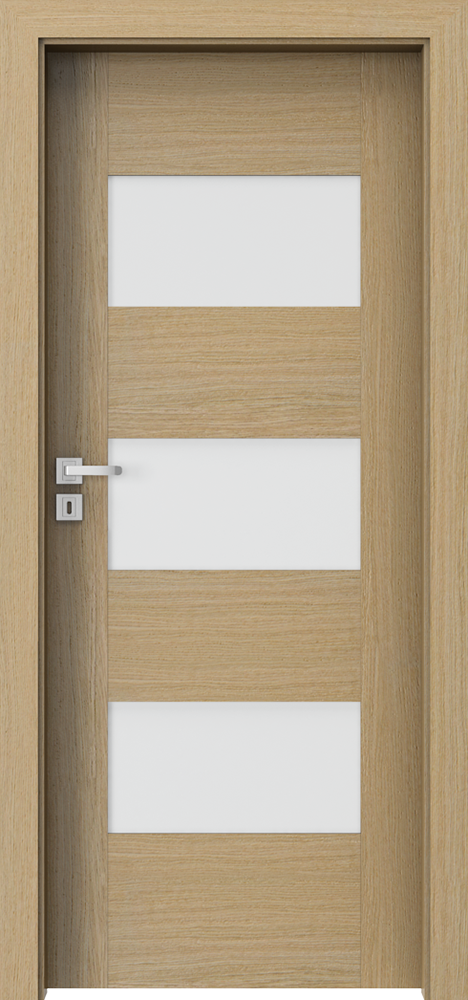 Цялата е покрита с естествен фурнир. Повърхността на крилото е защитена с екологични лакове на водна основа, фурнири от следните групи: Селект,Натурaлен Дъб, Сатен бели) са втвърдени чрез UV технология (полумат). Закалено матирано стъкло.