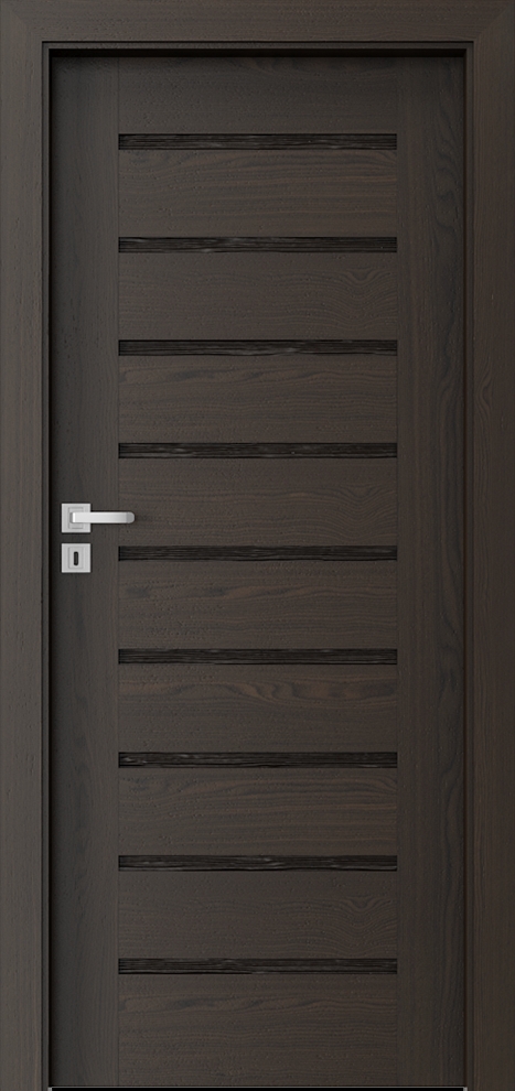 Цялата е покрита с естествен фурнир. Повърхността на крилото е защитена с екологични лакове на водна основа, фурнири от следните групи: Селект,Натурaлен Дъб, Сатен бели) са втвърдени чрез UV технология (полумат). Закалено матирано стъкло.