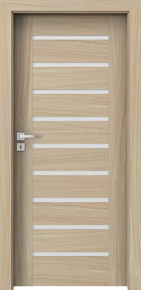 Цялата е покрита с естествен фурнир. Повърхността на крилото е защитена с екологични лакове на водна основа, фурнири от следните групи: Селект,Натурaлен Дъб, Сатен бели) са втвърдени чрез UV технология (полумат). Закалено матирано стъкло.
