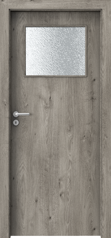 Фалцът на крилото е покрит с ABS кант. Модел стъкло: „чинчила“ или матирано закалено стъкло (опция срещу допълнително заплащане).