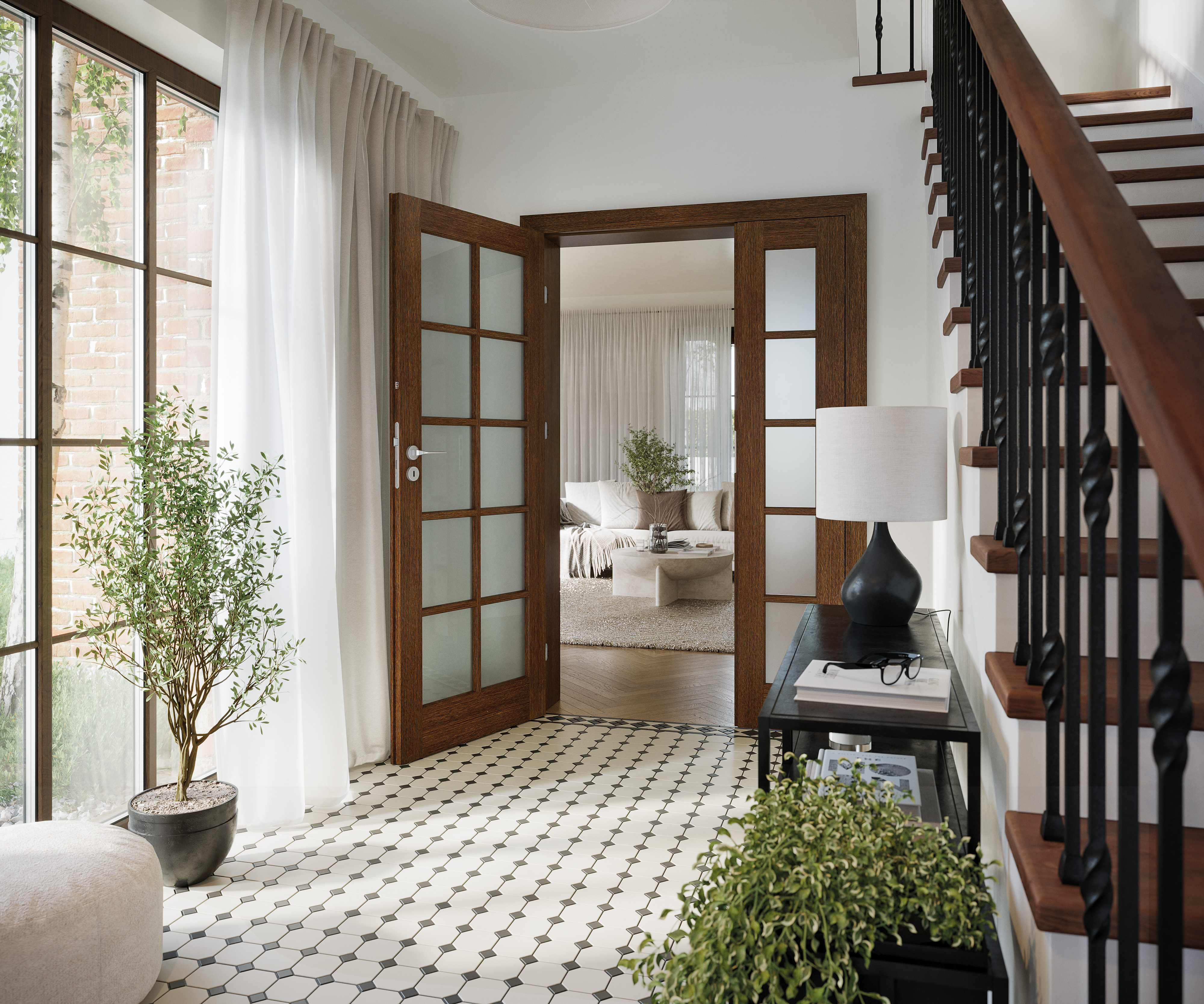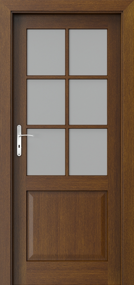 A design line based on classic divisions and proportions, inspired by old styles. The distinctive glazing with muntins is accompanied by classic finishes such as white and warm wood shades and browns.
