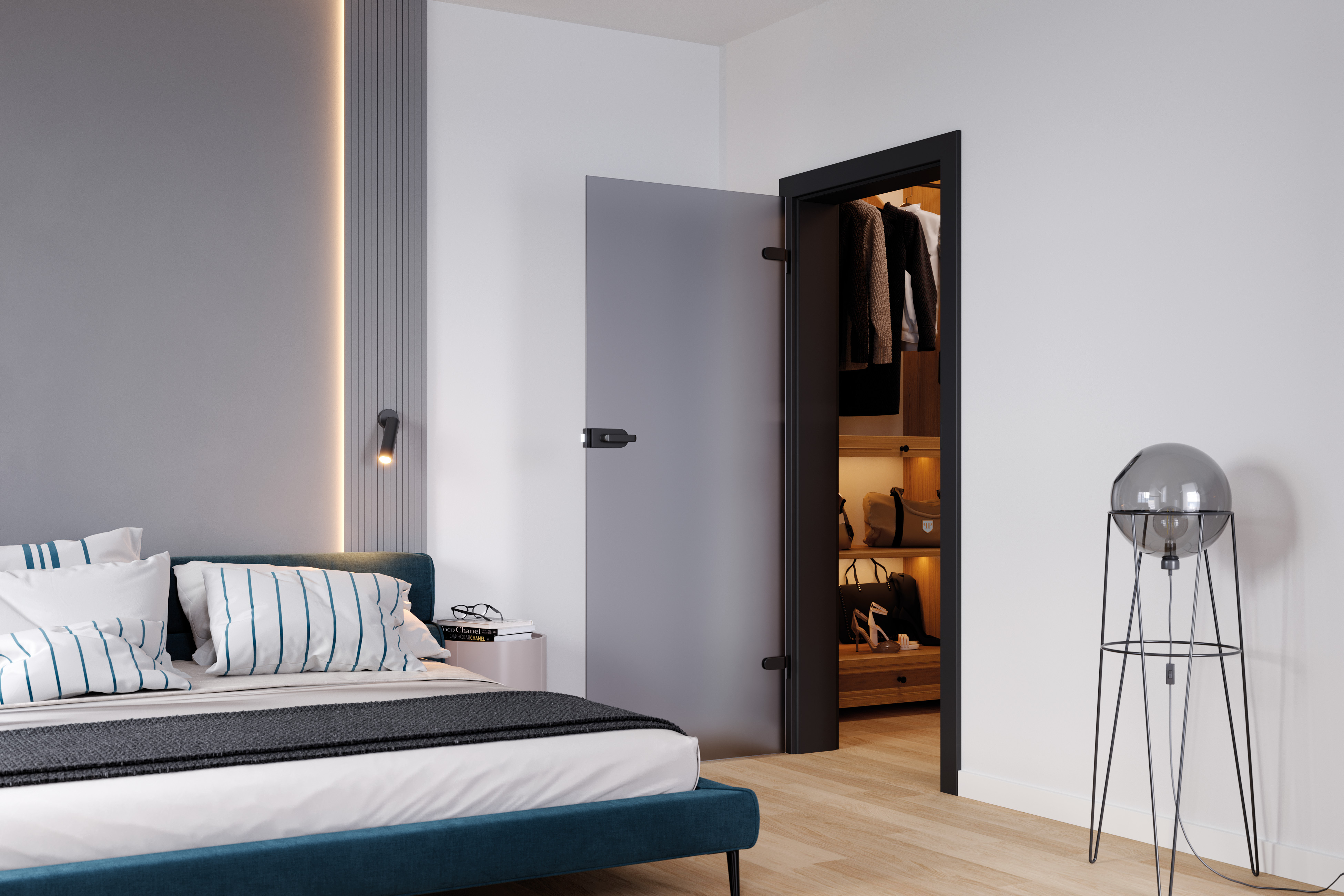 The design line offers transparent door leaves with a metal frame (steel or aluminum) or with classic, warm wooden frame. It's modernity that will work in any home – and is also safe for children.