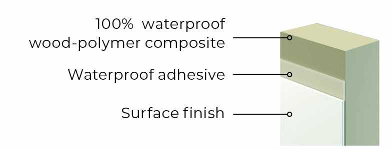 The HYDRO PROTECT™ frame is manufactured from a 100% water-resistant composite material, so it retains its durability and functional parameters even when exposed to water for a long time. It does not soak or swell, so it always looks aesthetically pleasing and the door always functions smoothly.