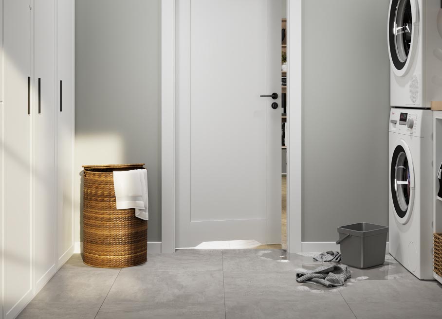 A malfunction in the laundry room? When the washing machine spills water is no joke, but since there is HYDRO PROTECT™ in PORTA doors for wet rooms no domestic flooding is terrible.