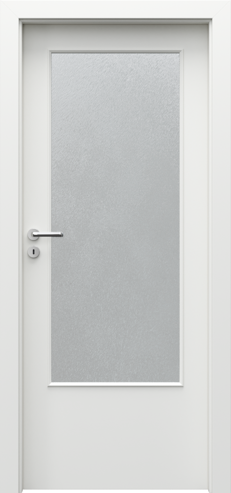 Honeycomb or chipboard core reinforced with rails and stiles (at extra charge). The construction is skinned with HDF. Chipboard core have preparation for shortening as a standard. Size ‘110’ is available only with chipboard core. The glazing size is the same as for size ‘100’ . Size ‚100‘ and ‚110‘ and reinforcement for a door closer requires a third hinge.
