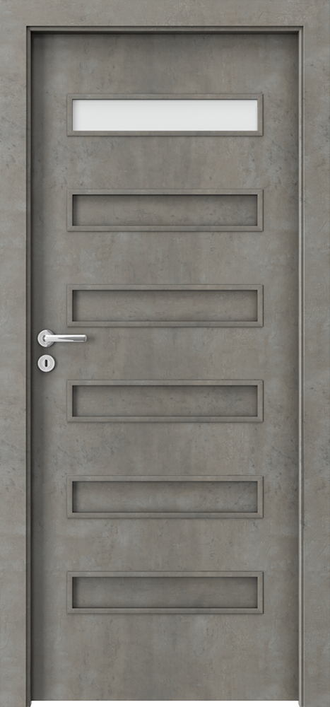 Honeycomb or chipboard core reinforced with rails and stiles (option at extra charge). The construction is skinned with HDF. Chipboard core has a preparation for shortening as a standard. Reinforcement for a door closer and sizes ‚100’ and ‚110‘ requires a third hinge.
