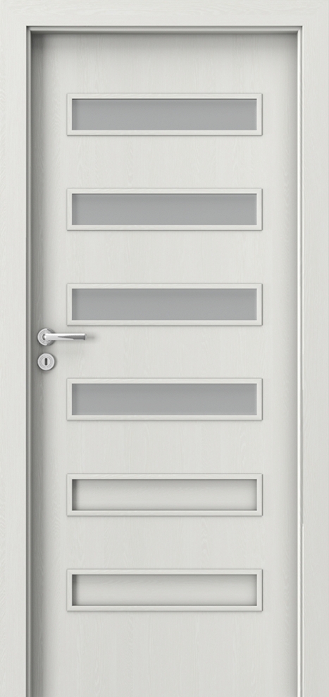 Honeycomb or chipboard core reinforced with rails and stiles (option at extra charge). The construction is skinned with HDF. Chipboard core has a preparation for shortening as a standard. Reinforcement for a door closer and sizes ‚100’ and ‚110‘ requires a third hinge.