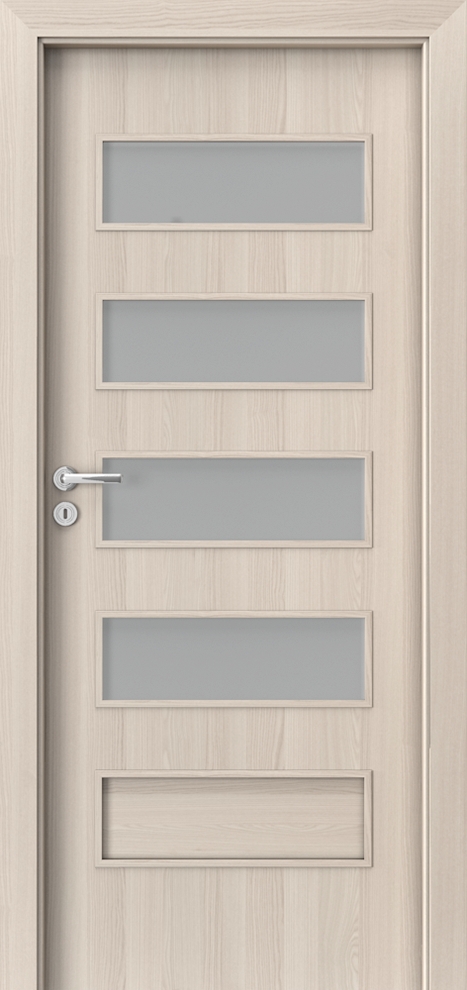 Honeycomb or chipboard core reinforced with rails and stiles (option at extra charge). The construction is skinned with HDF. Chipboard core has a preparation for shortening as a standard. Reinforcement for a door closer and sizes ‚100’ and ‚110‘ requires a third hinge.