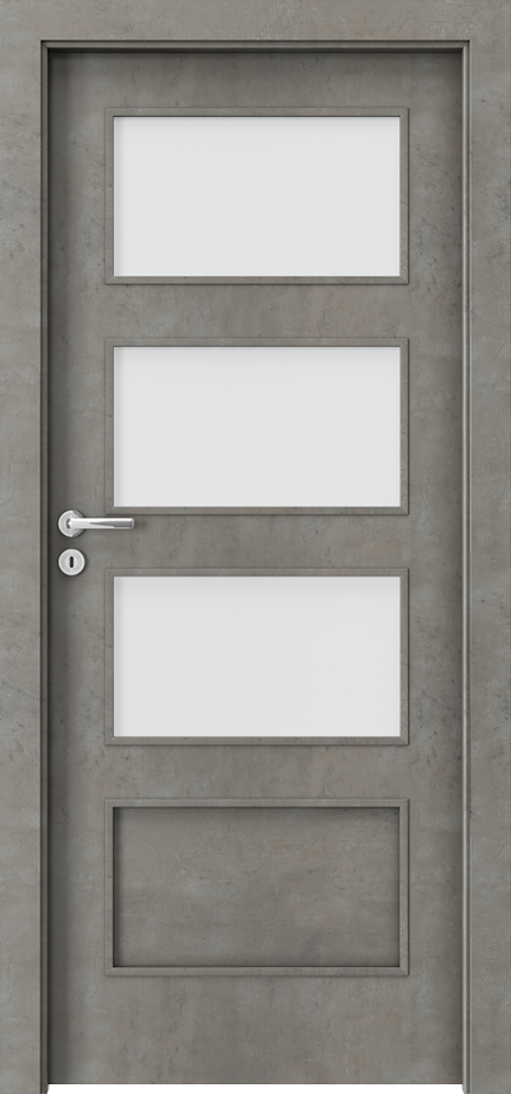 Honeycomb or chipboard core reinforced with rails and stiles (option at extra charge). The construction is skinned with HDF. Chipboard core has a preparation for shortening as a standard. Reinforcement for a door closer and sizes ‚100’ and ‚110‘ requires a third hinge.