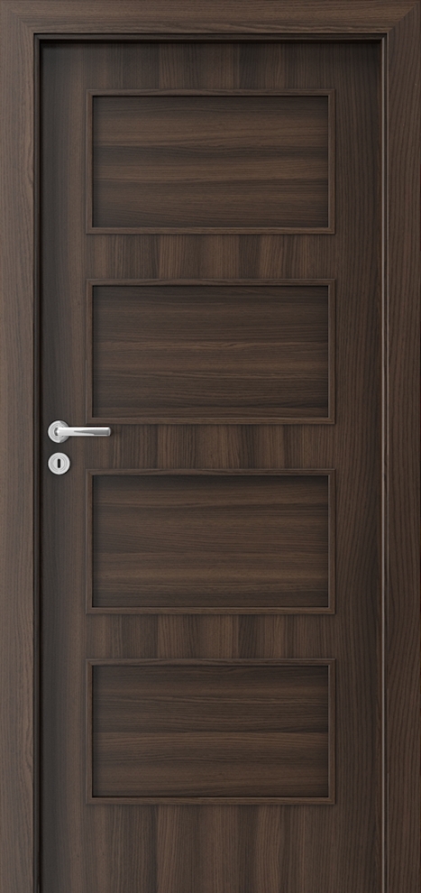 Honeycomb or chipboard core reinforced with rails and stiles (option at extra charge). The construction is skinned with HDF. Chipboard core has a preparation for shortening as a standard. Reinforcement for a door closer and sizes ‚100’ and ‚110‘ requires a third hinge.
