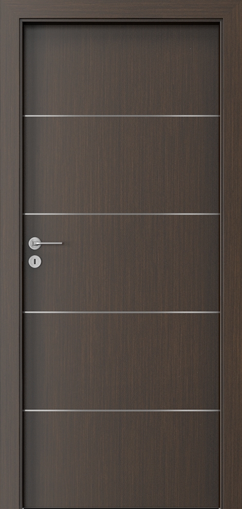 Door leaves are complemented with decorative inlays in silver, golden or black colour, width 6 mm. There is lipping ABS on the side edges of the doors finished with CPL HQ. Sliding option of models F.1 and G.1 – decorative inlays placed on pull handle height.
