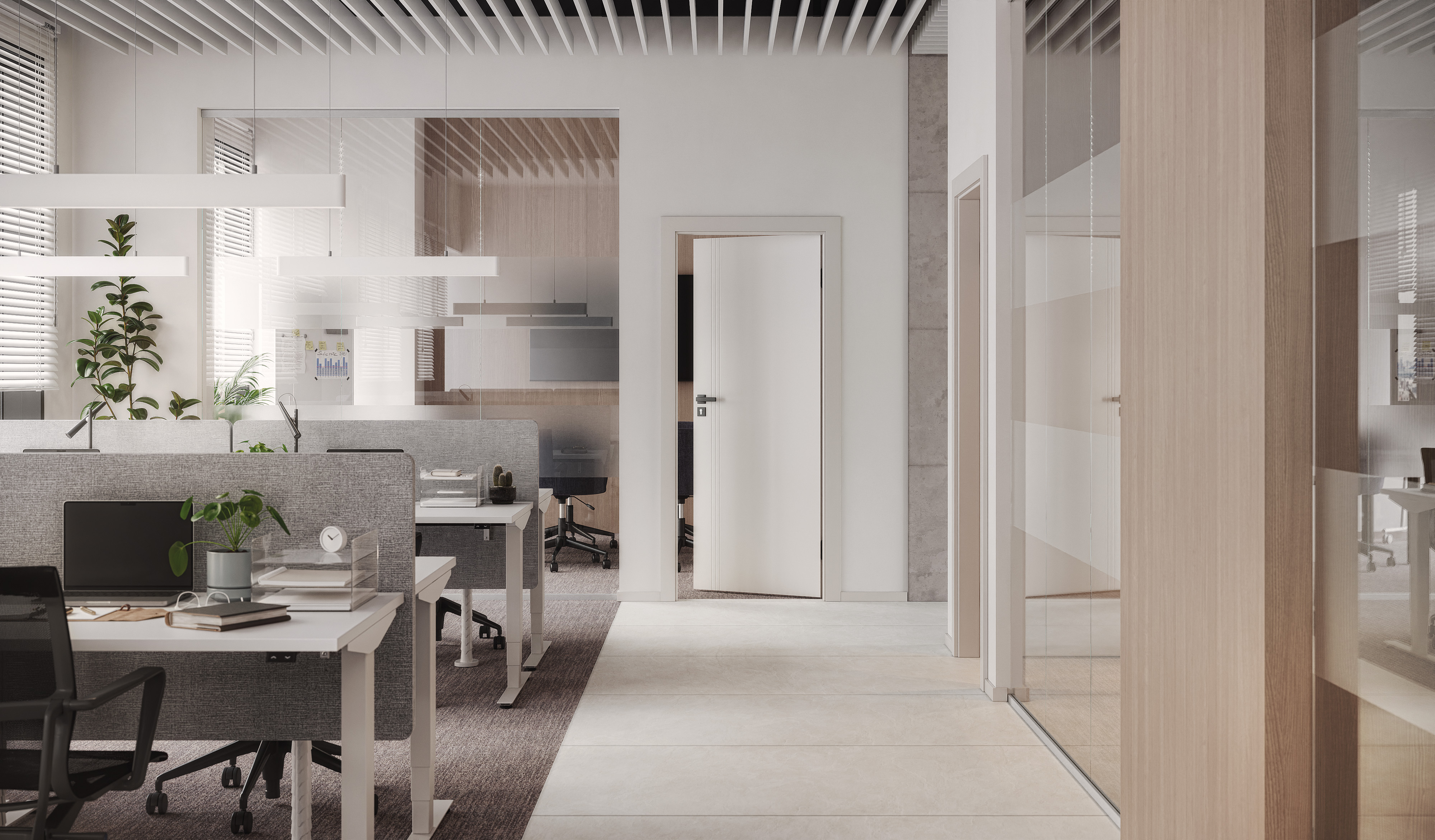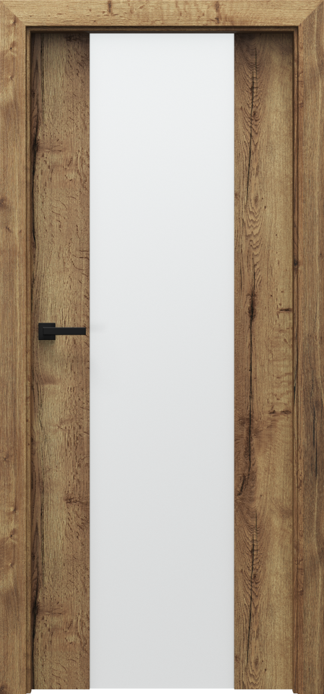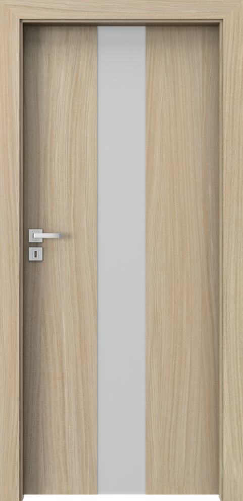 The design line is also distinguished by the vertical division of the door leaf – most often in the form of a narrow glass pane. The line running along the door handle is a subtle accent that fashiones the space.