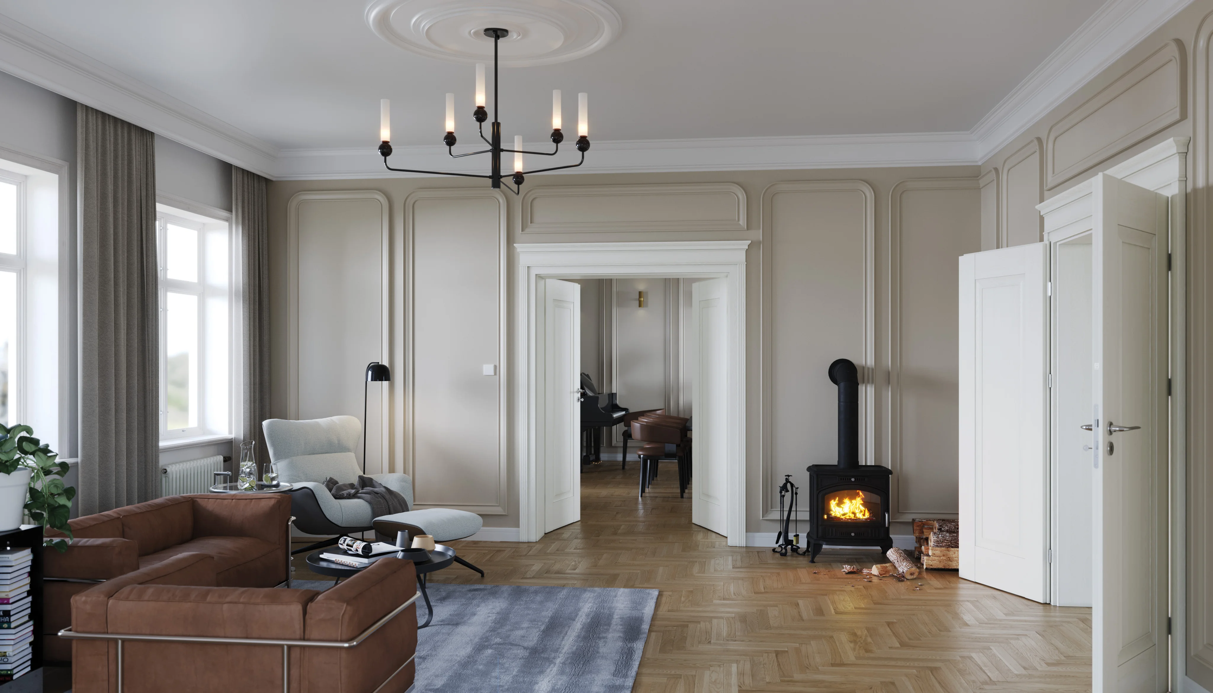 Klasszikus felosztásokon és arányokon alapuló, régi stílus ihlette dizájnvonal. A jellegzetes, keretes üvegezés klasszikus színekkel, például fehérrel és meleg fa barnákkal párosul.