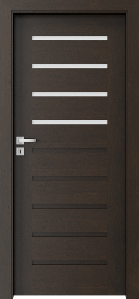 Az egészet természetes furnér borítja. Az ajtólap felületét ökológiai vízbázisú lakkokkal, furnérokkal védjük a következő csoportokból: Select, Természetes Tölgy, Szatén (kivéve a Fehér) UV technológiával feldolgozva (fél matt). Matt edzett üveg.