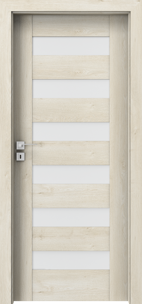 A típustól függően a lap vízszintes elemekbol áll, mely közbülső panelekkel vagy matt üvegbol készült 6 mm vastag edzett üvegből készülnek. Rövidítésre való előkészítés, maximum 60 mm. Harmadik pánt szükséges a 100 méretű ajtólapra.