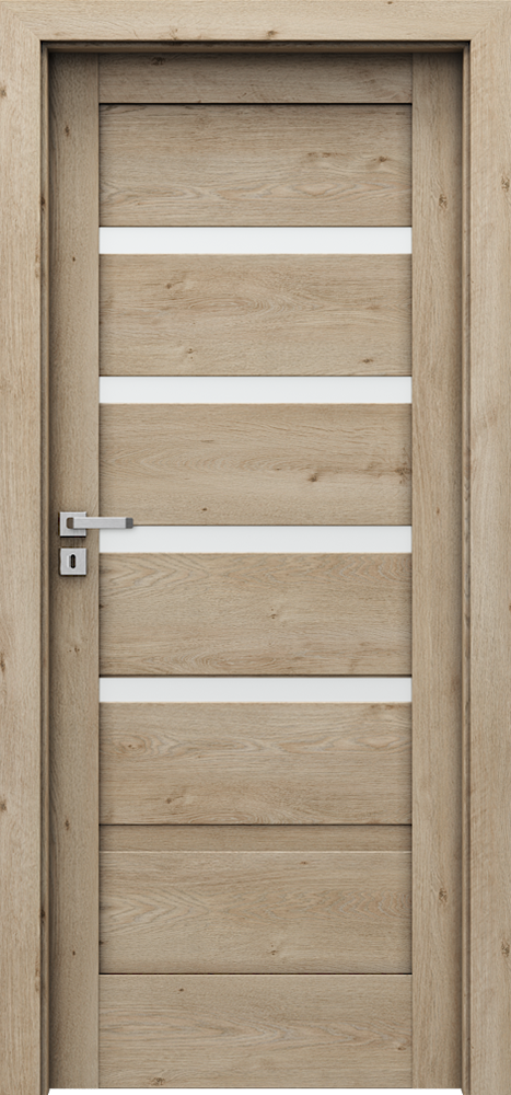 A típustól függően a lap vízszintes elemekből áll, mely közbülső panelekkel vagy matt üvegből készült 4 mm vastag edzett üvegből készülnek. Előkészítés a legfeljebb 30 mm-es rövidítéshez. Harmadik pánt szükséges a 100 méretű ajtólapra.