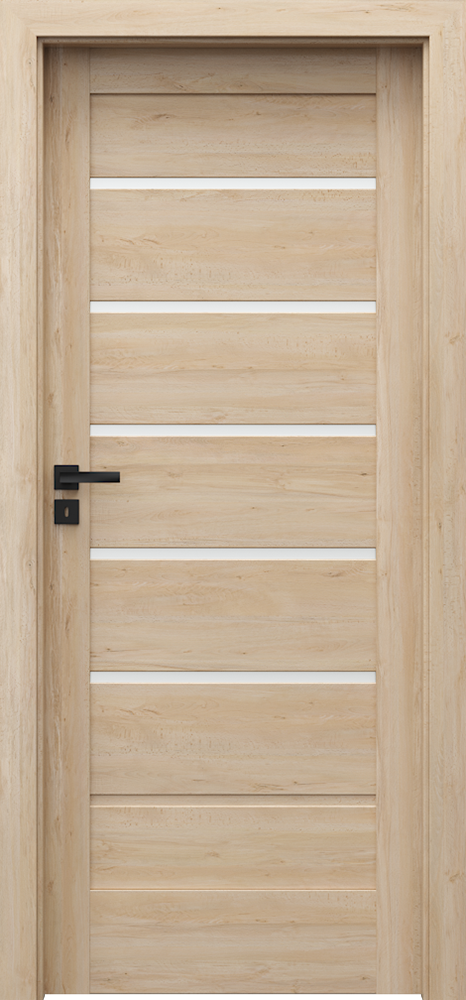 A típustól függően a lap vízszintes elemekből áll, mely közbülső panelekkel vagy matt üvegből készült 4 mm vastag edzett üvegből készülnek. Előkészítés a legfeljebb 30 mm-es rövidítéshez. Harmadik pánt szükséges a 100 méretű ajtólapra.