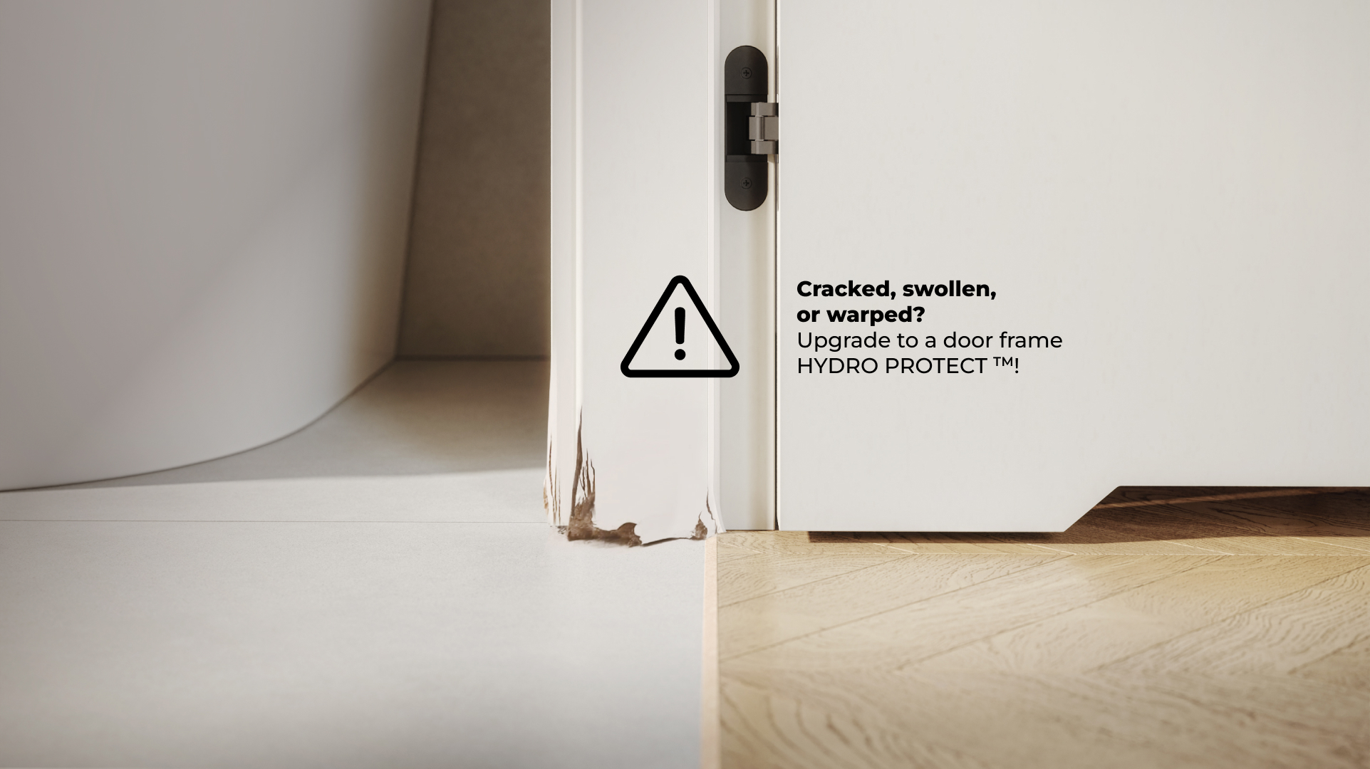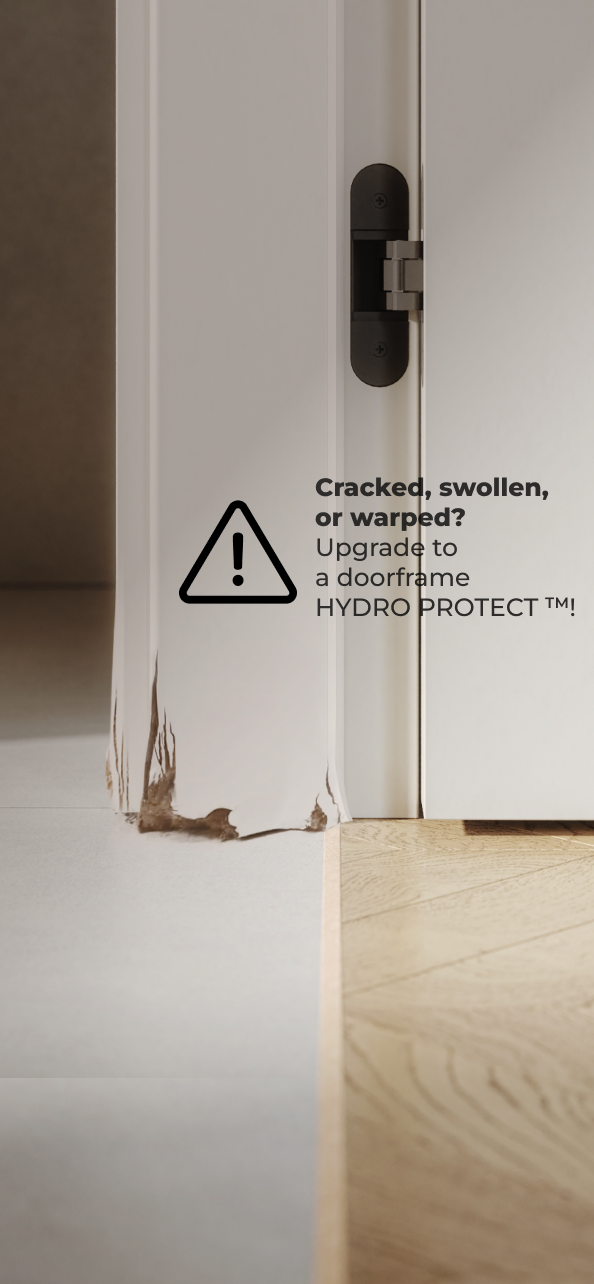 Poorly designed interior in a small bathroom? Unfortunate linear drain in the shower opens to the bathroom door? With the HYDRO PROTECT™ door frame you can feel at ease – it is 100% moisture resistant, even with prolonged exposure to water.