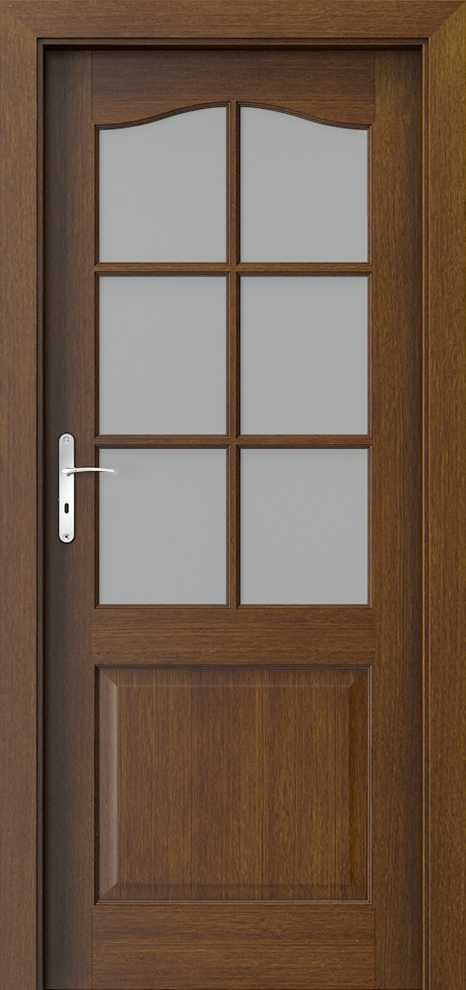A design line based on classic divisions and proportions, inspired by old styles. The distinctive glazing with muntins is accompanied by classic finishes such as white and warm wood shades and browns.