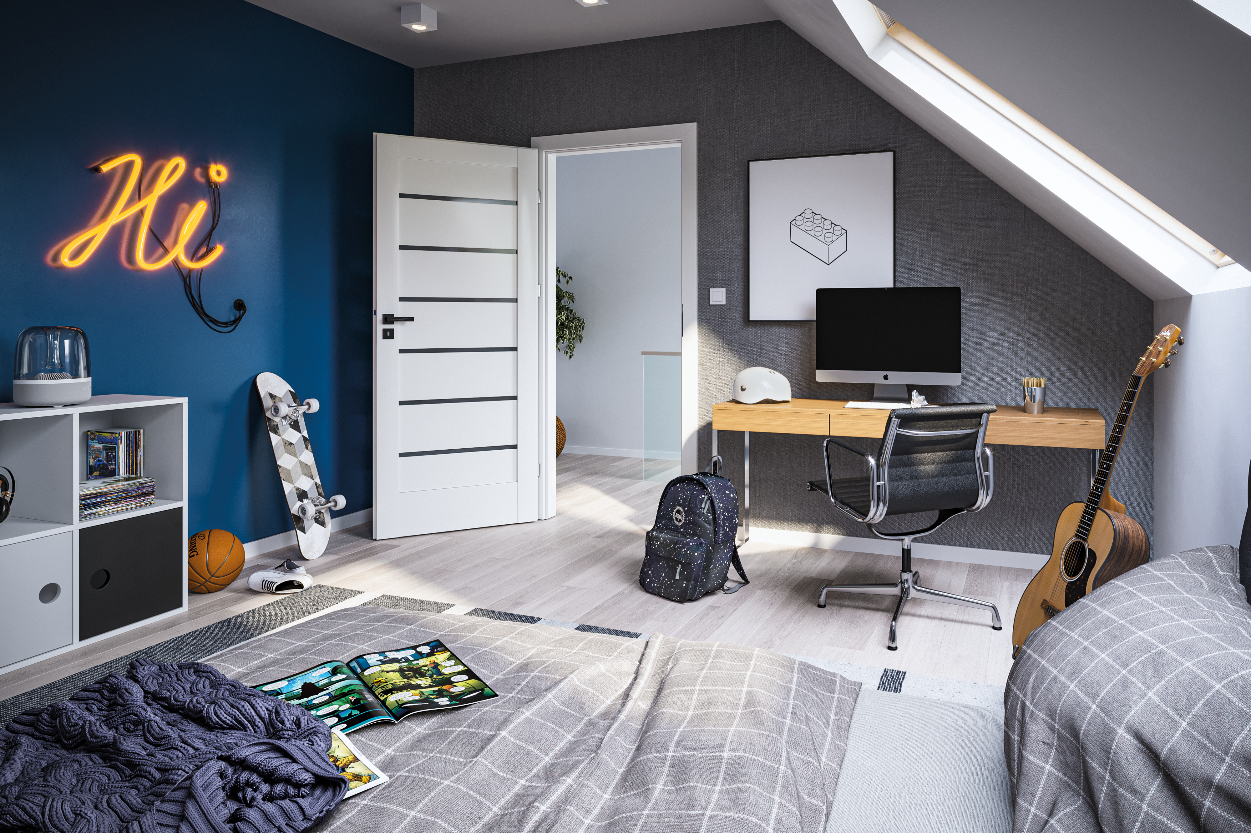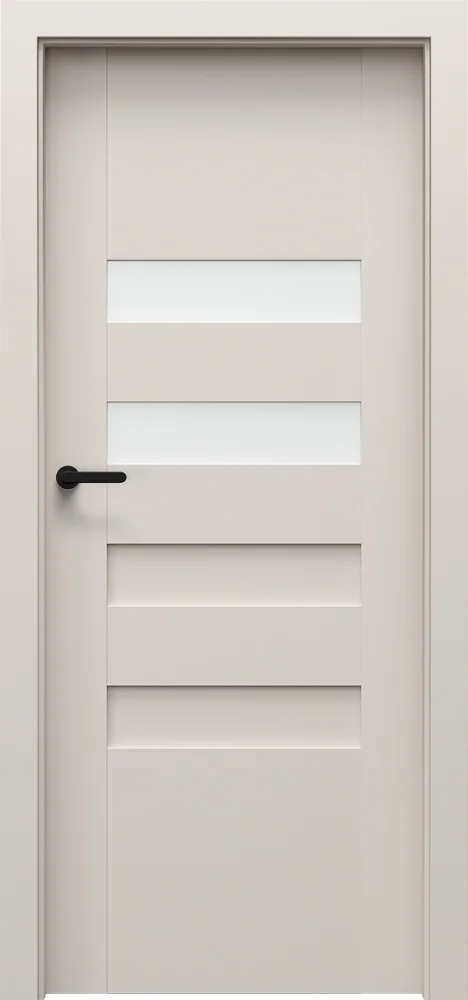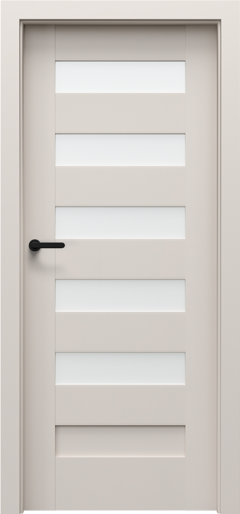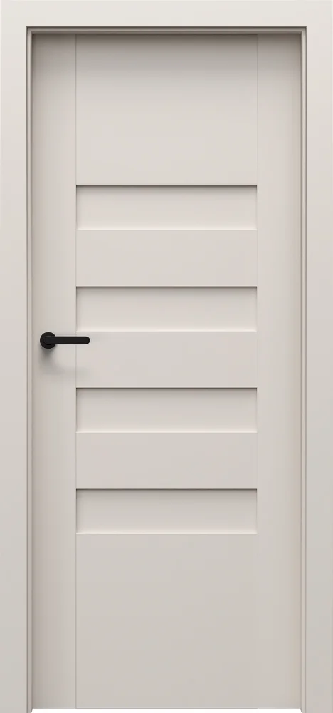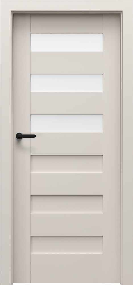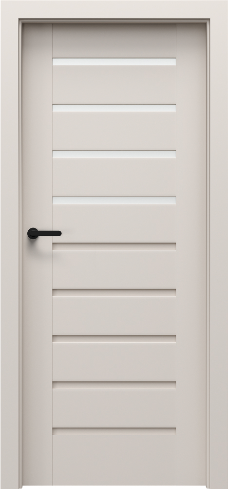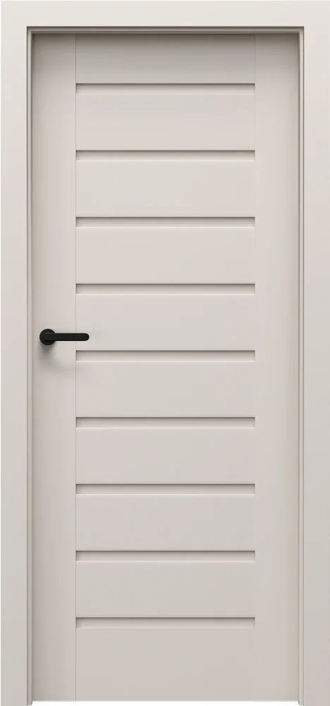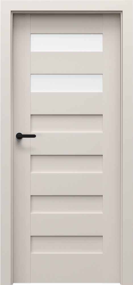 Šios dizaino linijos charakteringą vaizdą sukuria įvairaus pločio horizontalios juostos. Durys gali būti su stiklu arba be jo, dažniausiai rėminės ir plokščių konstrukcijos.