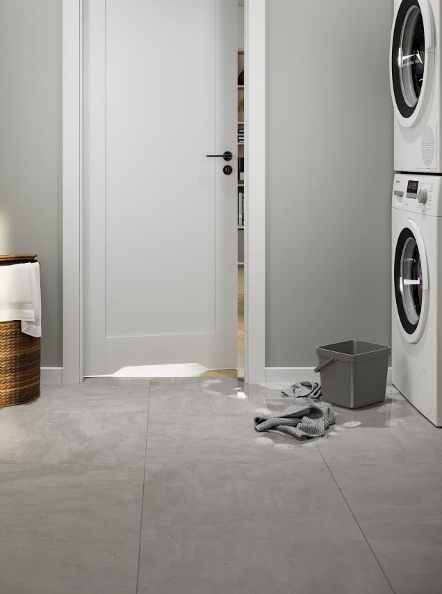 A malfunction in the laundry room? When the washing machine spills water is no joke, but since there is HYDRO PROTECT™ in PORTA doors for wet rooms no domestic flooding is terrible.