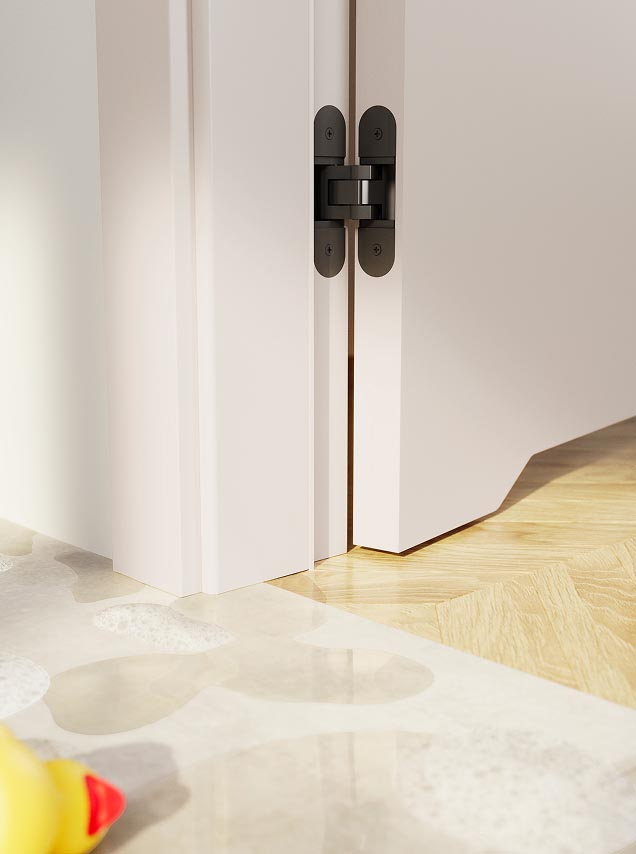 Poorly designed interior in a small bathroom? Unfortunate linear drain in the shower opens to the bathroom door? With the HYDRO PROTECT™ door frame you can feel at ease – it is 100% moisture resistant, even with prolonged exposure to water.