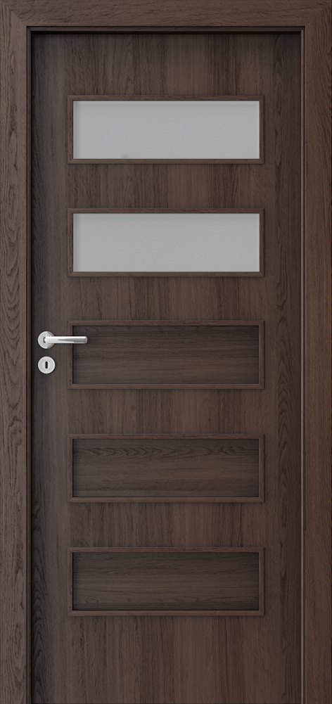 PORTA FIT varčios su CPL HQ apdaila kraštai kantuojami ABS juosta. Stiklinimui naudojamas matinis grūdintas stiklas.
