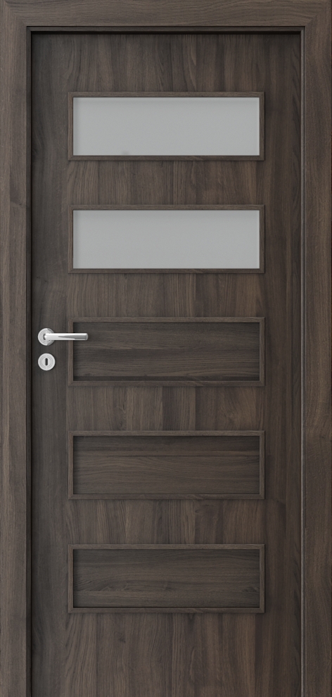 PORTA FIT varčios su CPL HQ apdaila kraštai kantuojami ABS juosta. Stiklinimui naudojamas matinis grūdintas stiklas.