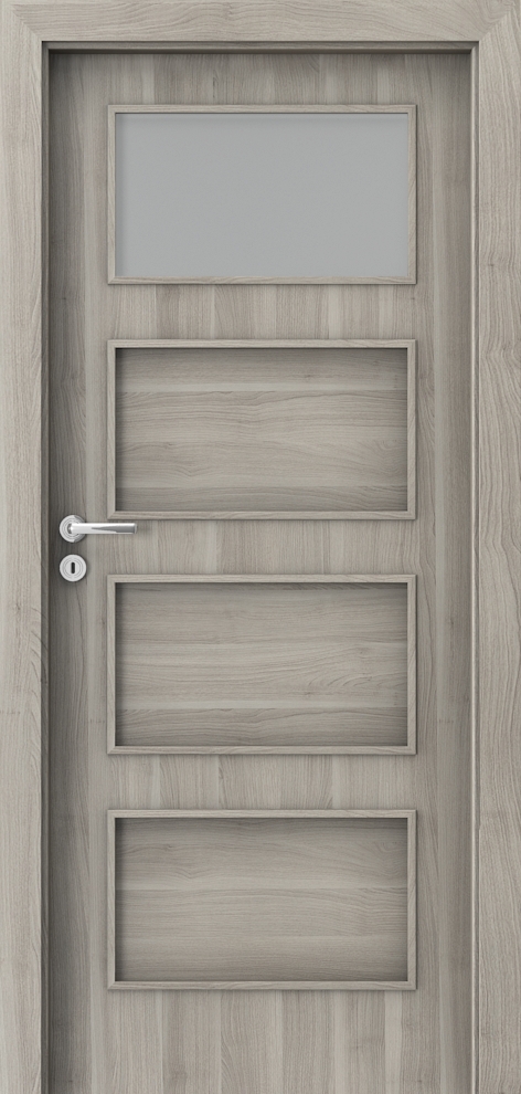 PORTA FIT varčios su CPL HQ apdaila kraštai kantuojami ABS juosta. Stiklinimui naudojamas matinis grūdintas stiklas.