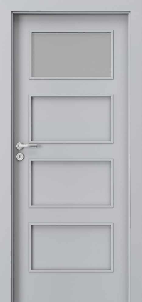 PORTA FIT varčios su CPL HQ apdaila kraštai kantuojami ABS juosta. Stiklinimui naudojamas matinis grūdintas stiklas.
