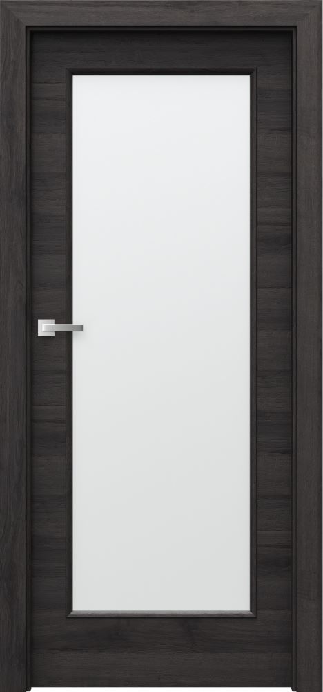 There is lipping ABS on the side edges. Models with decorative inlays – black or silver, 6 mm wide. Glazing – models of group 1 and 7 ‘chinchilla’ glass; frosted tempered glass; transparent glass. Models of group 4 – 8 mm thick frosted, lamienated safety glass. Black glazing is available for model 4.A (optionally at extra charge). The door leaf is skinned with a Gladstone/Halifax board (with structure), a door frame is finished with matching CPL Veneer 0,2 mm.