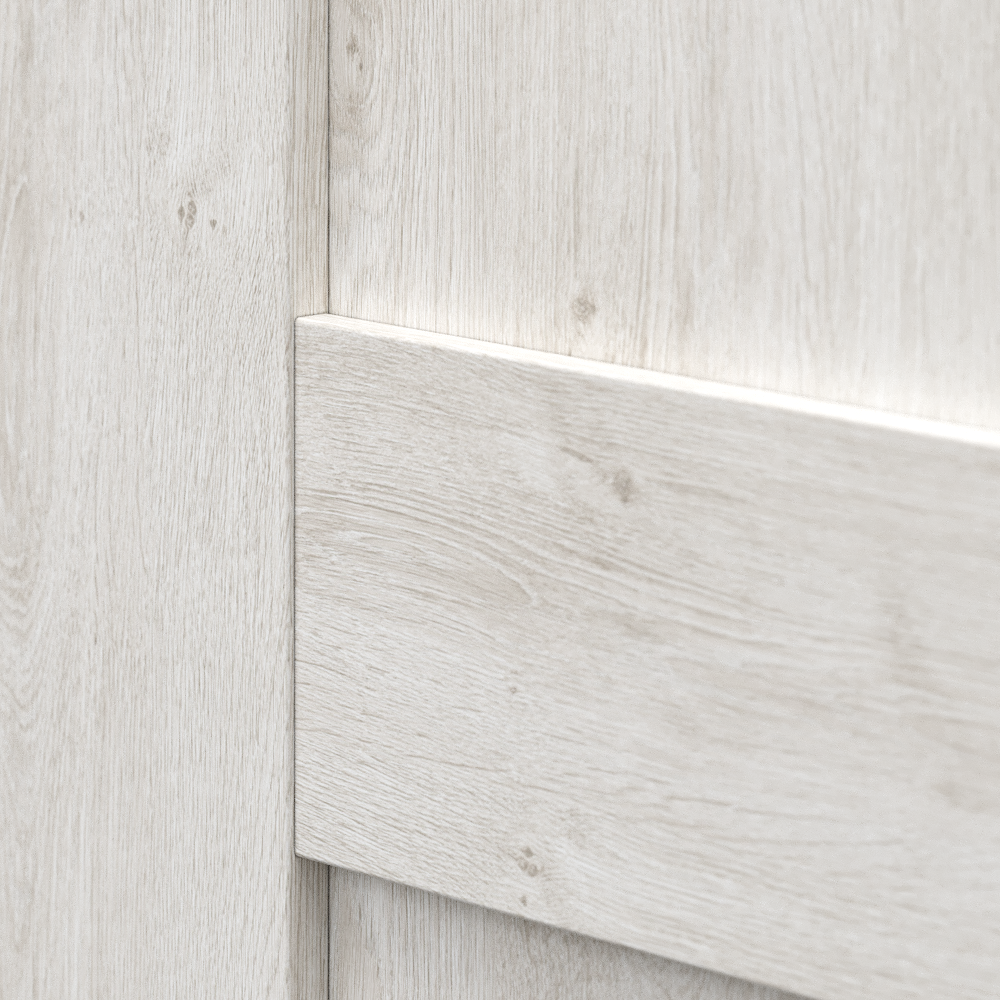 - Durims be užlaidos ir su atvirkštine užlaida – du 3D paslėpti vyriai, ovali traukimo rankenėlė stumdomoms durims