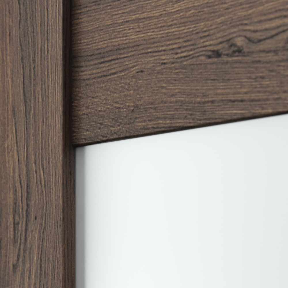 Door leaves contain rails, slim panels and 4 mm thick, frosted, tempered glass. A combination of those depends on a model. Preparation for shortening – maximum 30 mm. Size ‘100’ requires a third hinge.