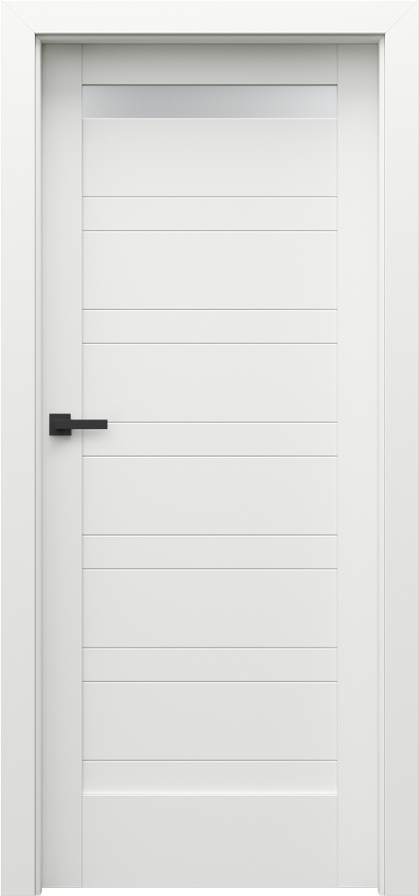 Door leaves contain rails, slim panels and 4 mm thick, frosted, tempered glass. A combination of those depends on a model. Preparation for shortening – maximum 30 mm. Size ‘100’ requires a third hinge.