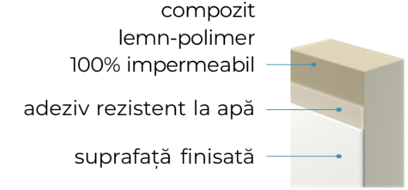 Este fabricat din material compozit care garantează 100% rezistență la apă