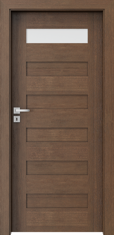 Ușa este finisată cu furnir natural. Ușa este fi nisată cu: Furnir Natural Select, furnir natural Stejar, furnir natural Stejar Satin (excepţie Alb) și protejat cu lac UV semi-mat. Sticlă mată călită.