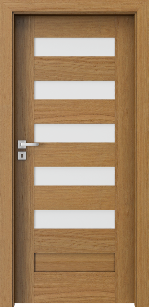 Ușa este finisată cu furnir natural. Ușa este fi nisată cu: Furnir Natural Select, furnir natural Stejar, furnir natural Stejar Satin (excepţie Alb) și protejat cu lac UV semi-mat. Sticlă mată călită.