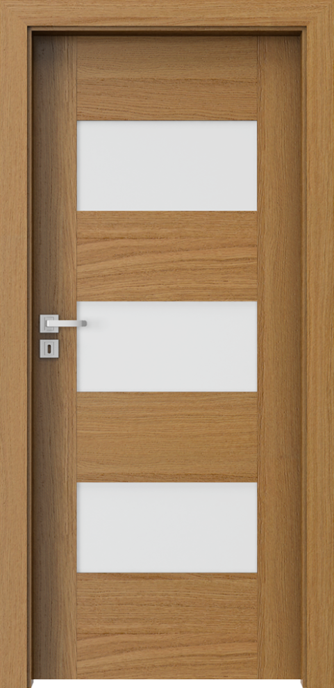 Ușa este finisată cu furnir natural. Ușa este fi nisată cu: Furnir Natural Select, furnir natural Stejar, furnir natural Stejar Satin (excepţie Alb) și protejat cu lac UV semi-mat. Sticlă mată călită.