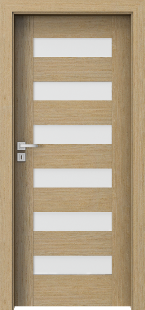 Ușa este finisată cu furnir natural. Ușa este fi nisată cu: Furnir Natural Select, furnir natural Stejar, furnir natural Stejar Satin (excepţie Alb) și protejat cu lac UV semi-mat. Sticlă mată călită.