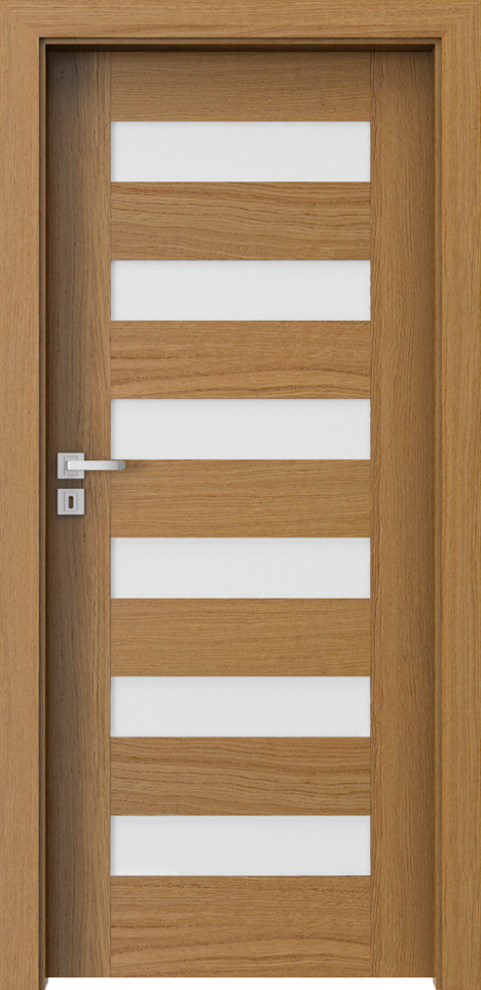 Ușa este finisată cu furnir natural. Ușa este fi nisată cu: Furnir Natural Select, furnir natural Stejar, furnir natural Stejar Satin (excepţie Alb) și protejat cu lac UV semi-mat. Sticlă mată călită.