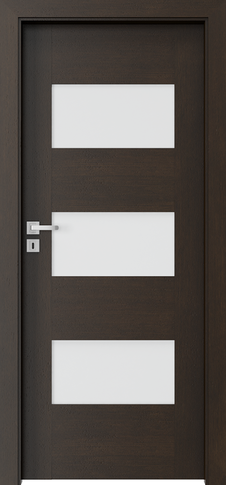 Ușa este finisată cu furnir natural. Ușa este fi nisată cu: Furnir Natural Select, furnir natural Stejar, furnir natural Stejar Satin (excepţie Alb) și protejat cu lac UV semi-mat. Sticlă mată călită.